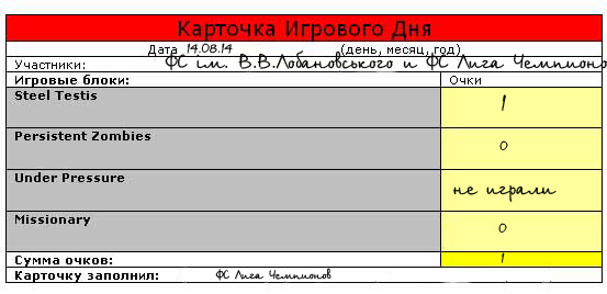 Тестовая игра НеЛегального Турнира состоялась. Целью этой спарринг-встречи была проверка играбельности турнира и выявления скрытых недостатков. В