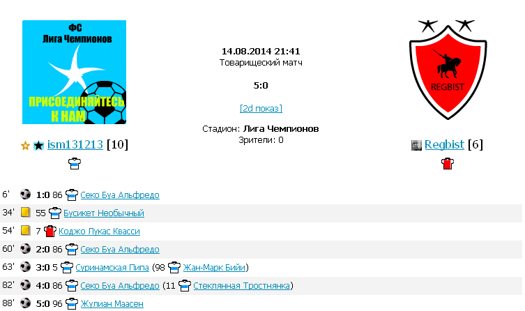 Во второй игре серии, за ФС Лига Чемпионов играл ism131213 (масса - 2279) его
