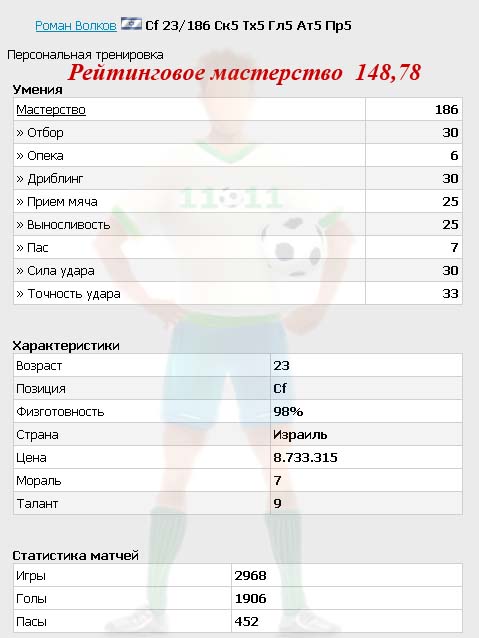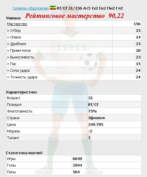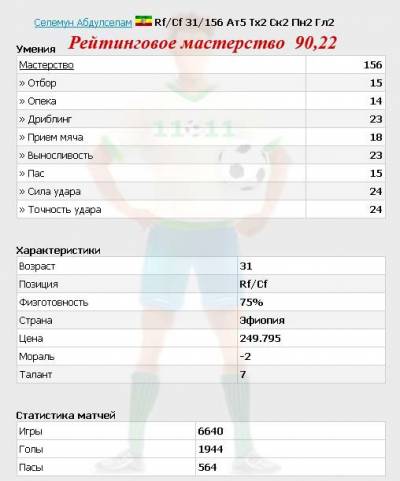 Игрок – Селемун Абдулселам Rf/Cf 31/156 Ат5 Тх2 Ск2 Пн2 Гл2